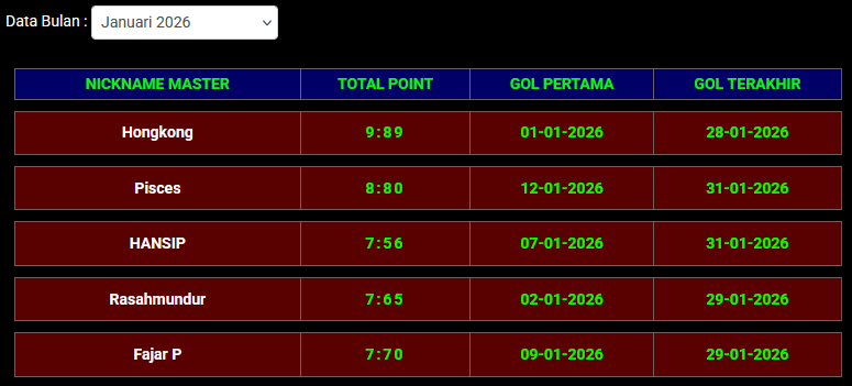 | 31 | Korban togel | 1:9 | 05-02-2026 | 05-02-2026 |